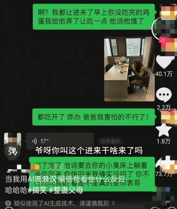 以此测试对方的反映以及本人正在对方心中的主要性。安徽一女子用AI东西生成了高度逼实的“流离汉卧坐餐厅”等图片,用AI制做“流离汉闯入家中”图片来整蛊家人的帖子正在社交平台走红。